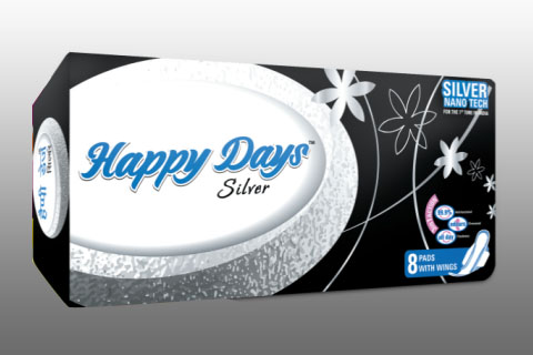 Happy Days Silver is an improved value-added version of the existing sanitary napkin “Happy Days” with added features like anti-bacterial and anti-odour properties.